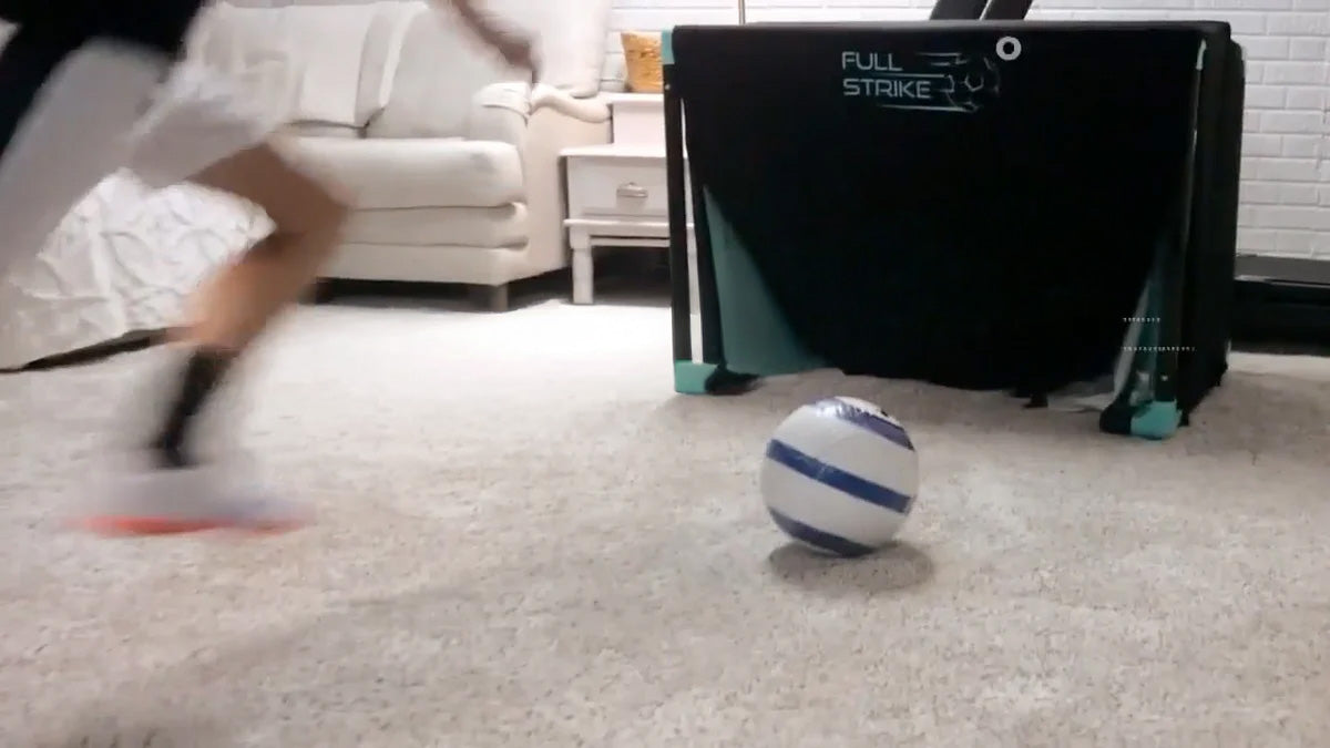Kids train dribbling indoors all of the time, but the critical skill of striking a ball has been difficult to work on, until now.